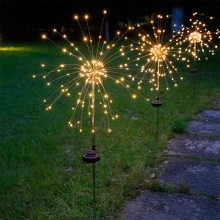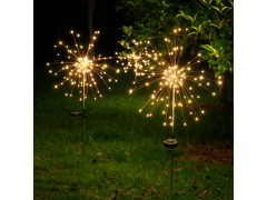 LED煙花燈太陽(yáng)能地插銅線燈戶外草坪庭院裝飾圣誕燈串滿天星彩燈
